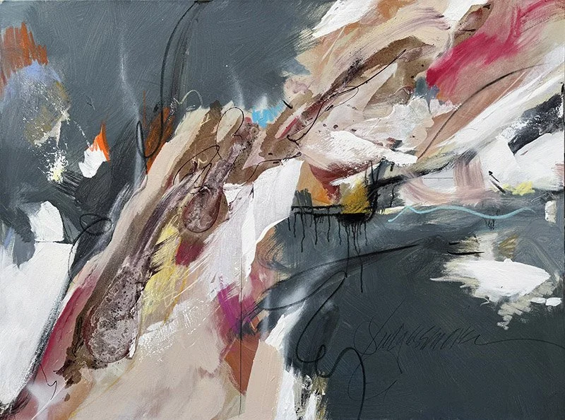Barbara Burgess Maier: “Joy/Rage,” mixed media on canvas, 36” x 48”